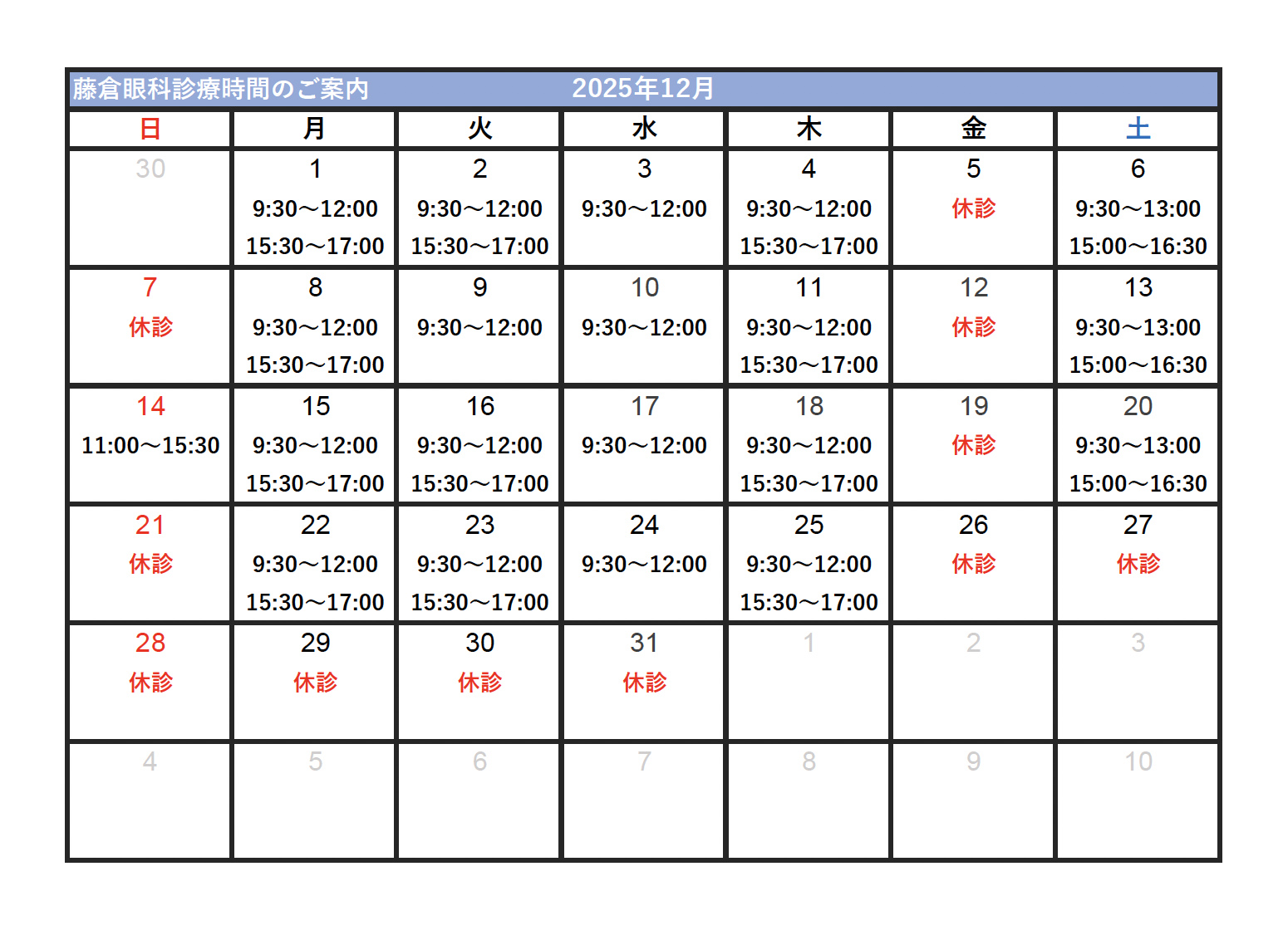 ※ご案内眼科は2025年12月27日(土)〜2026年1月3日(土)が休診となります。眼科受診ご希望のお客様はご注意ください。