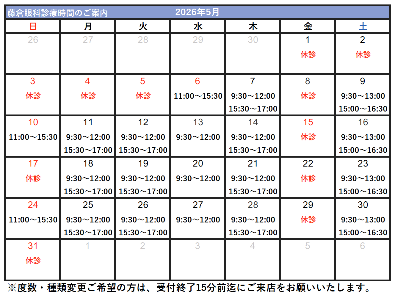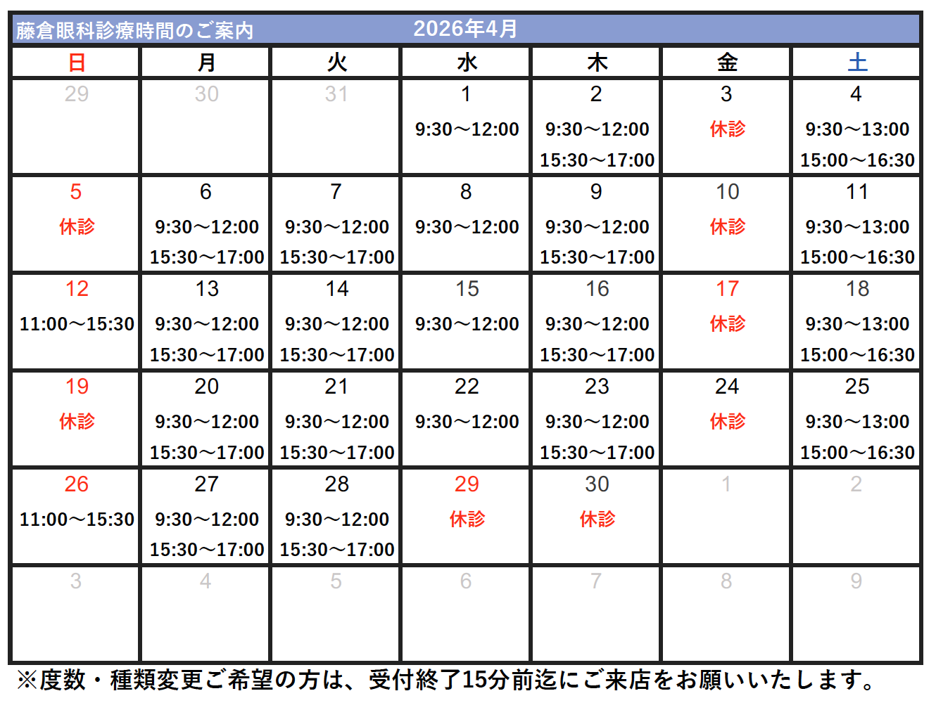 【2026年1月からのコンタクトレンズ受付時間】