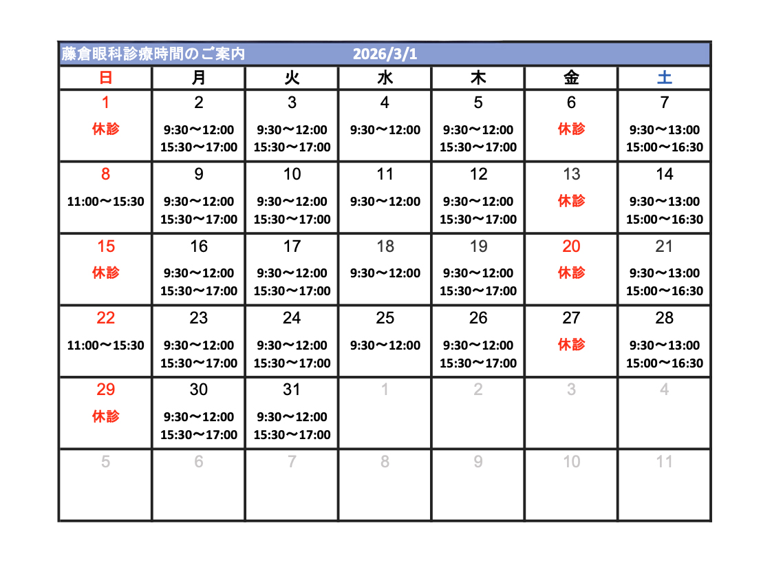 → 2026年3月 眼科ご案内時間はこちら