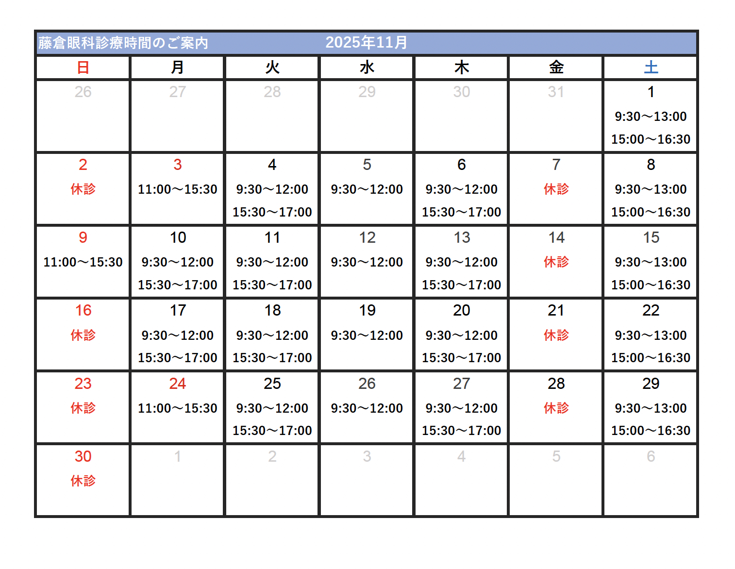 → 2025年11月 眼科ご案内時間はこちら